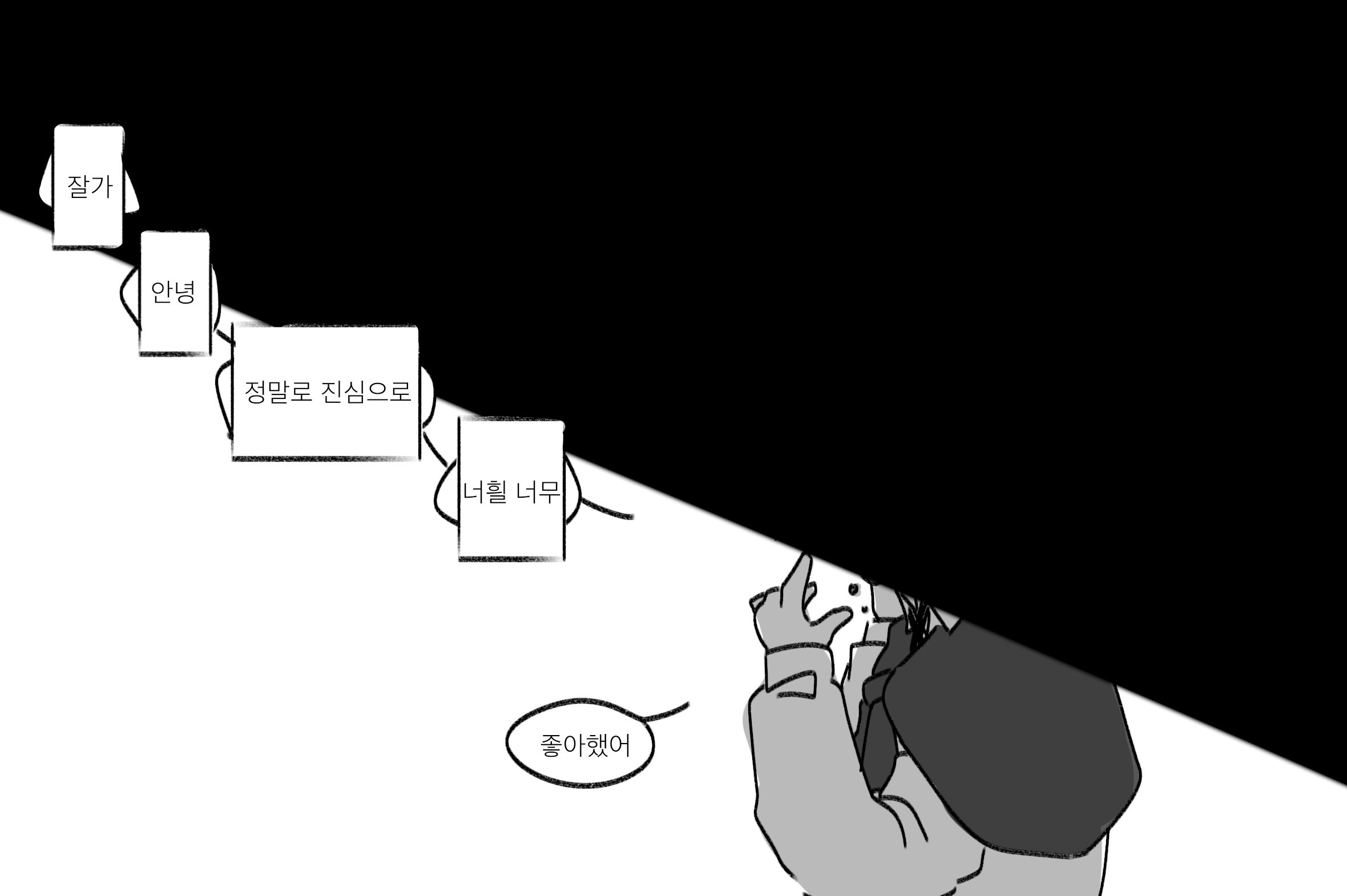 점점 자신에게서 멀어져가는 모든 이들의 등을 한없이 바라보며… 다시는 볼 수 없는 당신을 향해 한 마디 한 마디, 닿지 않는 말을 내뱉었다.