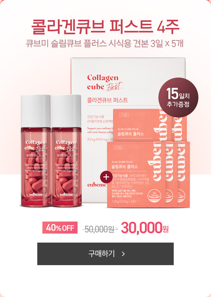 큐브미 콜라겐 큐브 퍼스트 4주 CUBE ME-큐브미 뷰티푸드 건강식품 이너뷰티|AMOREMALL 이제 개별 인증형 콜라겐을 섭취하자! 하루 2알로 간편하게 촉촉하게 피부를 가꾸어주는 콜라겐 큐브 퍼스트. 큐브미뷰티푸드 건강식품 이너뷰티-콜라겐큐브퍼스트 4주 | AMORE MALLwww.amoremall.com자세한 설명은 사이트에서 콜라겐이 1,000mg 함유되는 게 고민이었다.내가 생각하는 하루 콜라겐은 3000mg 이상 알루론산, 엘라스틴이 있는데 아모레퍼시픽 #저분자피쉬콜라겐 6000mg 제품이 있다.#퍼펙트 큐브 플러스 문제는 가격이다.4주간 135,000원 비싸다.그리고 액체 앰플이다.효과에 대한 확신도 없지만…큐브미 퍼펙트 큐브 플러스 4주간 CUBE ME-큐브미 뷰티푸드 건강식품 이너뷰티 | AMORE MALLnull. 큐브미뷰티푸드 건강식품 이너뷰티-퍼펙트큐브플러스(4주) | AMORE MALLwww.amoremall.com큐브미 퍼펙트 큐브 플러스 4주간 CUBE ME-큐브미 뷰티푸드 건강식품 이너뷰티 | AMORE MALLnull. 큐브미뷰티푸드 건강식품 이너뷰티-퍼펙트큐브플러스(4주) | AMORE MALLwww.amoremall.com큐브미 퍼펙트 큐브 플러스 4주간 CUBE ME-큐브미 뷰티푸드 건강식품 이너뷰티 | AMORE MALLnull. 큐브미뷰티푸드 건강식품 이너뷰티-퍼펙트큐브플러스(4주) | AMORE MALLwww.amoremall.com퍼펙트 큐브 플러스 4주 + 체험분 10일 히알루론산과 비오틴, 콜라겐 6000mg으로 건강하게 채워지는 프리미엄 이너뷰티 앰플 www.cubeme.co.krhttps://www.amoremall.com아모레퍼시픽 공식 온라인쇼핑몰 – 신규고객 10% 추가할인 아모레퍼시픽, 설화수, 프리메라, 헤라, 아이오페, 라네즈, 마몽드, 한율아모레퍼시픽화장품온라인공식몰 www.amoremall.com아모레퍼시픽사이트 https://www.cubeme.co.kr아름답고 건강을 추구하는 이너뷰티 브랜드-큐브미(CUBEME) 아름다운 피부와 건강한 몸을 위한 이너뷰티, 큐브미 www.cubeme.co.kr큐브미 사이트 두 곳의 제품 할인과 이벤트 등이 달라 가격이 다르다.포스팅하면서 발견했는데 사이트 둘 다 그렇게 친절하진 않아.큐브 누르는 사이트가 지금 조금 이상해.찾을 수도 클릭도 안 된다.ㅎㅎㅎ큐브미 콜라겐 큐브 플러스 4주 CUBE ME-큐브미 뷰티푸드 건강식품 이너뷰티 | AMORE MALL 1일 1포 콜라겐 큐브 플러스로 간편하게 피부 건강을 챙기자! 가방에 쏙 들고 다니면서 언제 어디서나 먹을 수 있는 파우치 콜라겐. 큐브미뷰티푸드 건강식품 이너뷰티-콜라겐큐브플러스 4주 | AMORE MALLwww.amoremall.com저분자 피쉬 콜라겐 3000mg #콜라겐 큐브 플러스가 있다.복숭아맛 액체 50,000원 콜라겐 큐브 플러스 4주 135,000원 – 콜라겐 6,000mg 퍼펙트 큐브 플러스 4주 50,000원 – 콜라겐 3,000mg 콜라겐 큐브 퍼스트 4주 50,000원 – 콜라겐 1,000mg 비교해서 고민하고 구매해보고 결정하기로 지금까지 총 3병을 마셨다.6주 동안 나에게 큰 도움이 되지 않았다.동국제약 센테리안24+ 마시는 콜라겐플러스 3000 먹을 때는 머리카락도 달랐는데…콜라겐큐브퍼스트 추가 구매 계획은 없어.콜라겐 3000mg 이상이 되어야하나??저분자 피쉬 콜라겐 3000mg #콜라겐 큐브 플러스가 있다.복숭아맛 액체 50,000원 콜라겐 큐브 플러스 4주 135,000원 – 콜라겐 6,000mg 퍼펙트 큐브 플러스 4주 50,000원 – 콜라겐 3,000mg 콜라겐 큐브 퍼스트 4주 50,000원 – 콜라겐 1,000mg 비교해서 고민하고 구매해보고 결정하기로 지금까지 총 3병을 마셨다.6주 동안 나에게 큰 도움이 되지 않았다.동국제약 센테리안24+ 마시는 콜라겐플러스 3000 먹을 때는 머리카락도 달랐는데…콜라겐큐브퍼스트 추가 구매 계획은 없어.콜라겐 3000mg 이상이 되어야하나??저분자 피쉬 콜라겐 3000mg #콜라겐 큐브 플러스가 있다.복숭아맛 액체 50,000원 콜라겐 큐브 플러스 4주 135,000원 – 콜라겐 6,000mg 퍼펙트 큐브 플러스 4주 50,000원 – 콜라겐 3,000mg 콜라겐 큐브 퍼스트 4주 50,000원 – 콜라겐 1,000mg 비교해서 고민하고 구매해보고 결정하기로 지금까지 총 3병을 마셨다.6주 동안 나에게 큰 도움이 되지 않았다.동국제약 센테리안24+ 마시는 콜라겐플러스 3000 먹을 때는 머리카락도 달랐는데…콜라겐큐브퍼스트 추가 구매 계획은 없어.콜라겐 3000mg 이상이 되어야하나??#동국제약센테리안24+마시는콜라겐플러스3000 #비빌랩더콜라겐1500 #에버콜라겐인앤업플러스 #라이필더마콜라겐 #아모레퍼시픽큐브미콜라겐큐브퍼스트